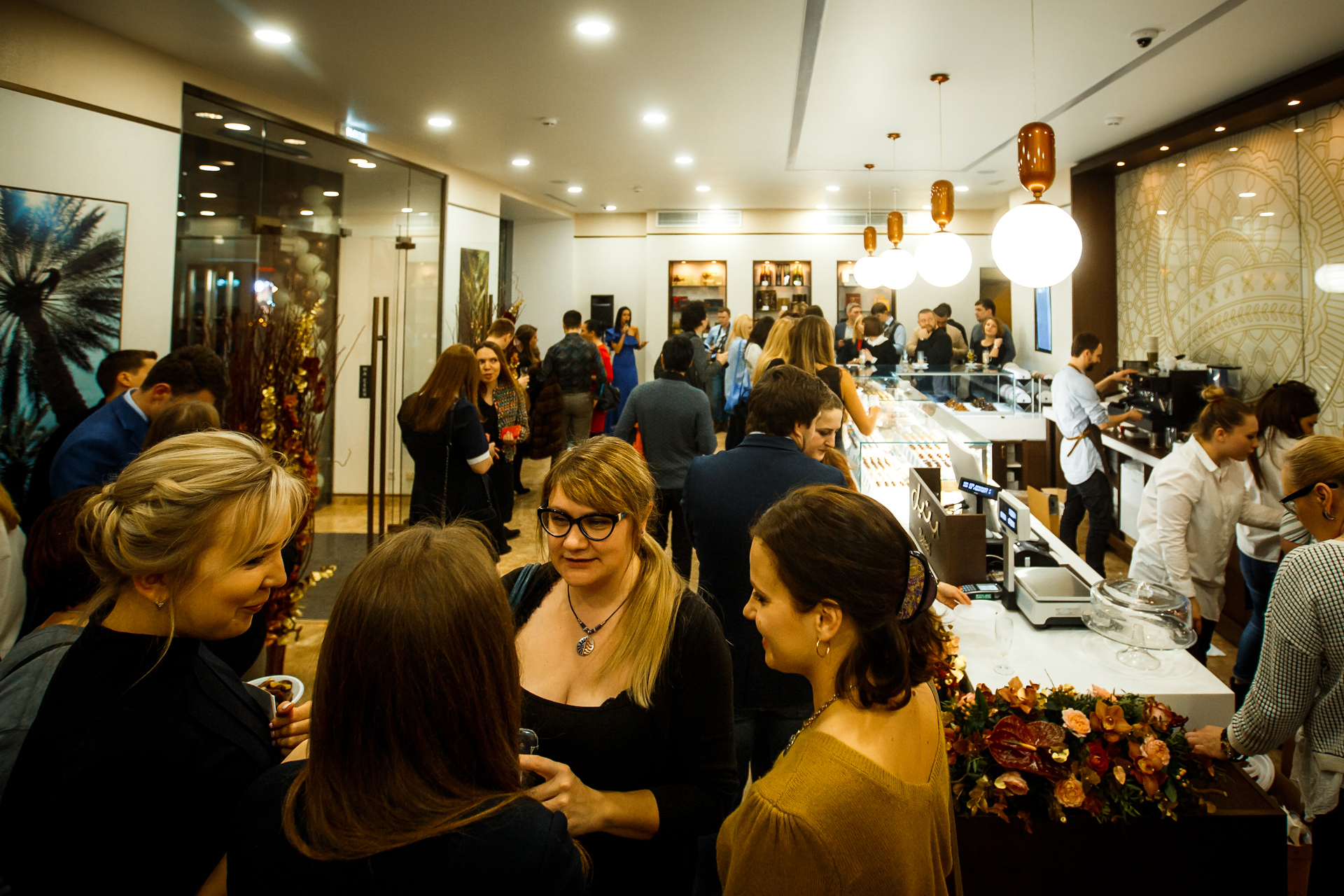 Торжественное открытие Bateel Cafe прошло в виде светского мероприятия. На него были приглашены все сливки петербургской богемы: журналисты ведущих изданий, популярные блогеры и успешные представители разных сфер бизнеса. В шикарных интерьерах шоколадно-золотистых оттенков хотелось распробовать буквально все сладости и продегустировать необычное шампанское приятным послевкусием безалкогольных напитков из Франции на основе фиников.