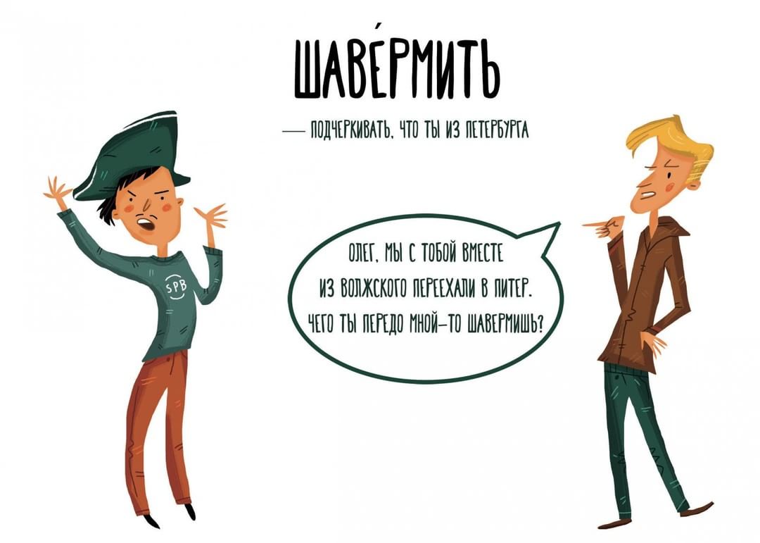 В мае выходит книга «Неформальный словарь петербуржца». В этой книжке собрано 64 неологизма, образованных от слов, которые петербуржцы употребляют ежедневно в своей речи. Например, «шавермить» подчеркивает, что ты из Петербурга. Только здесь так называют шаурму.